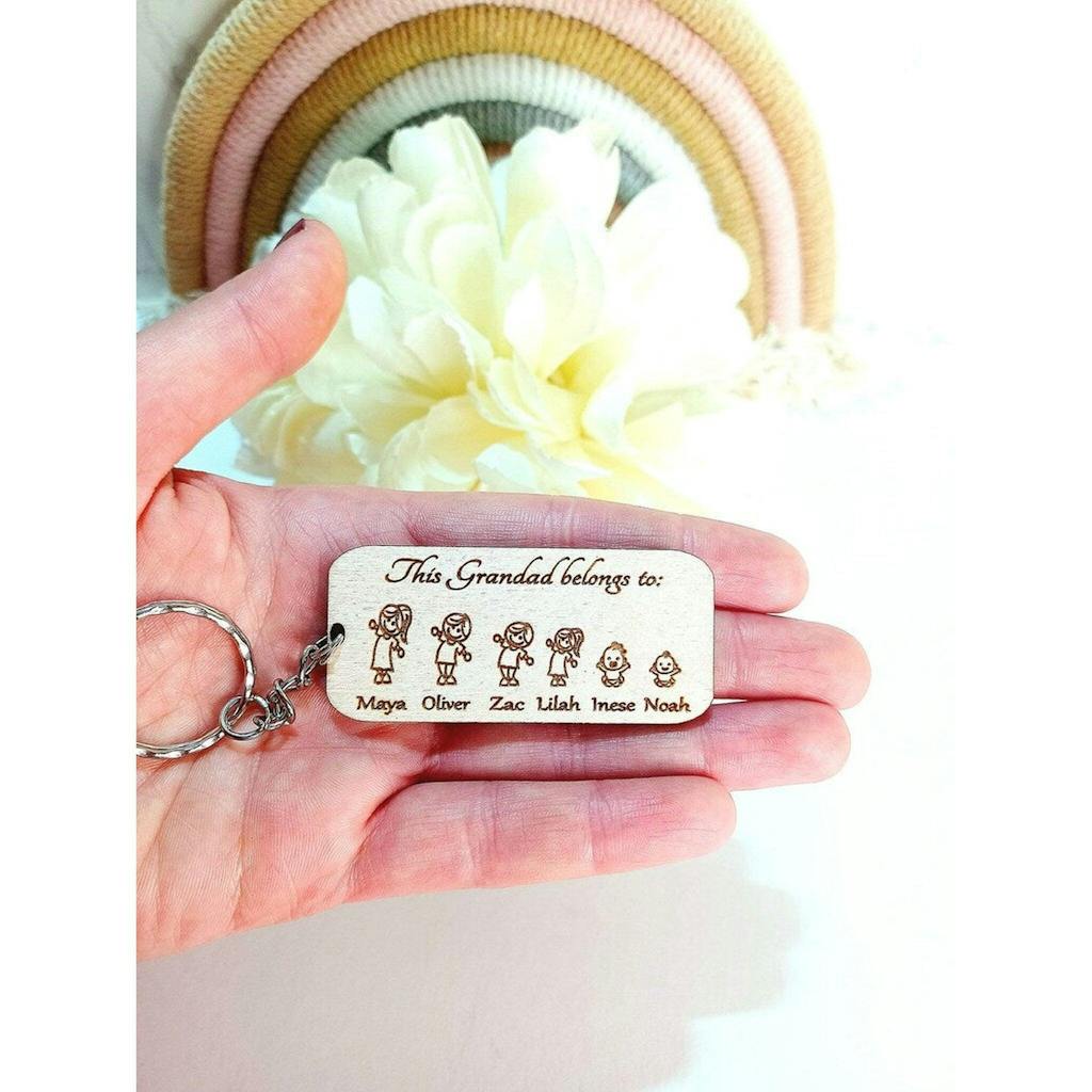 If you're looking for a unique and special gift for a loved one, we have just the thing for you! Our wooden keyrings are engraved with "This Grandad belongs to..." and the names of children, grandchildren etc., making it a thoughtful and heartfelt present.