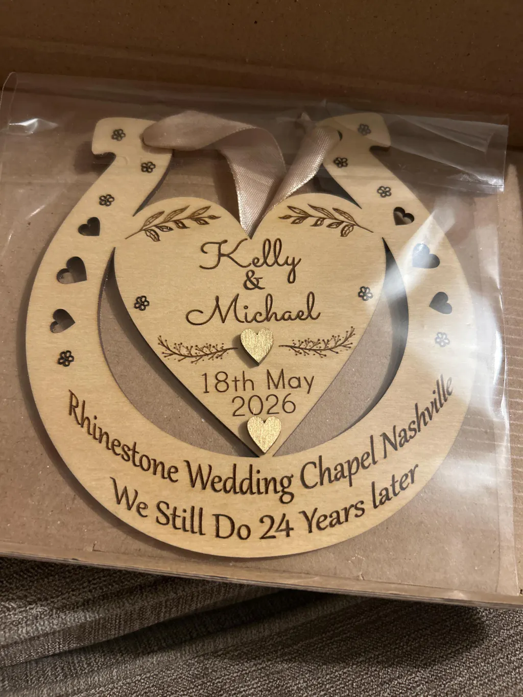 Celebrate Their Big Day with a Personalised Wooden Wedding Horseshoe Gift! 💍